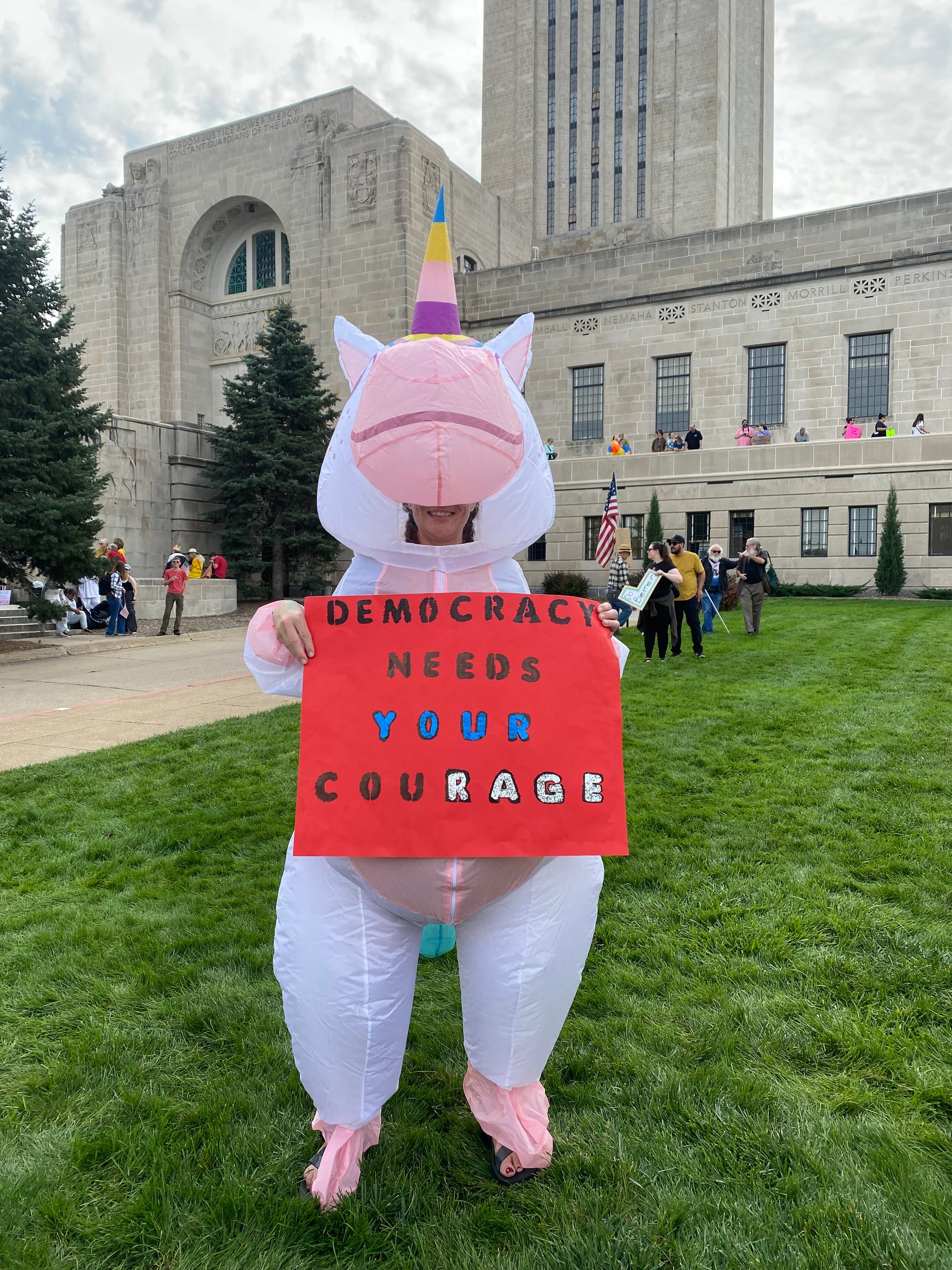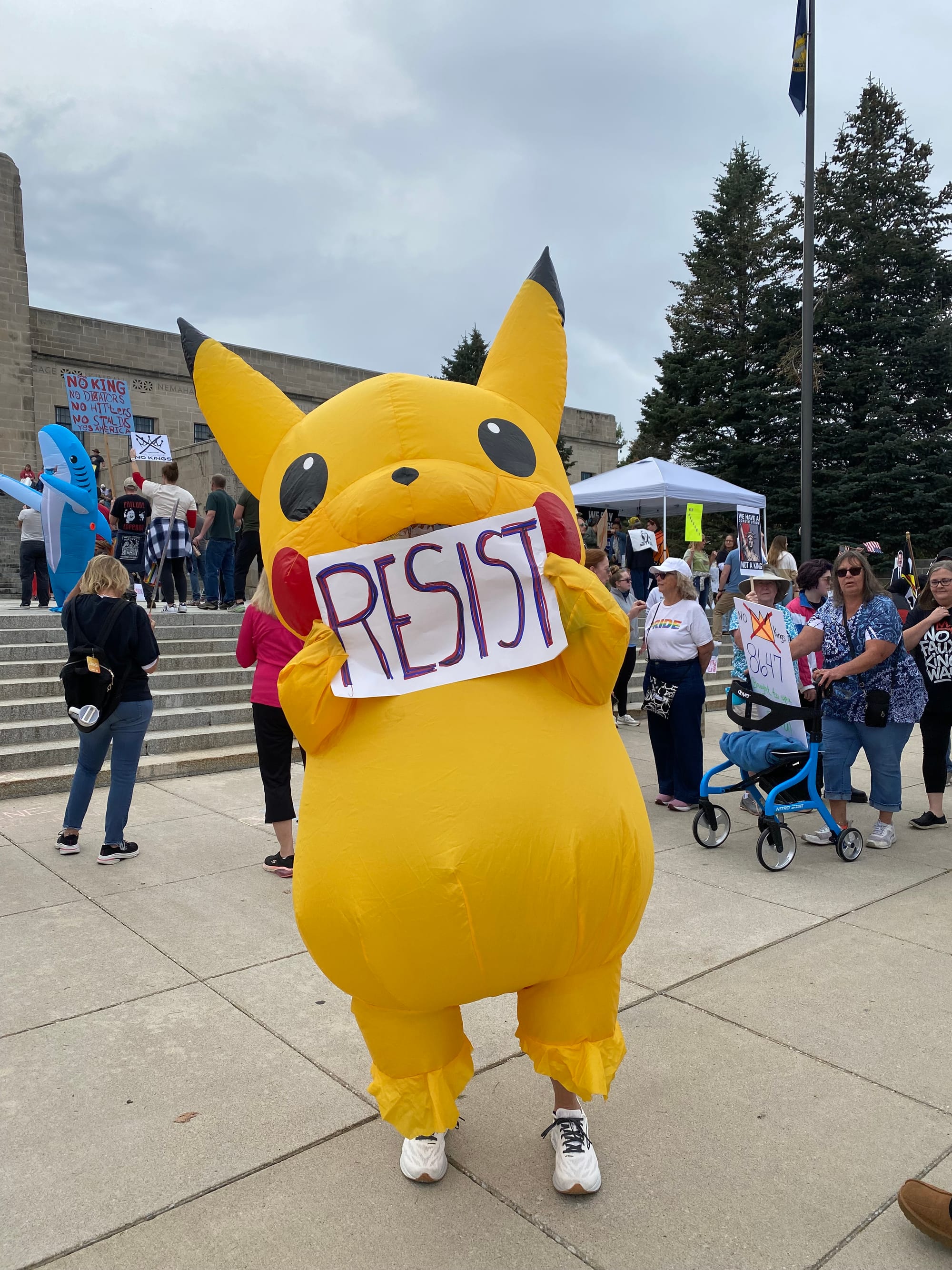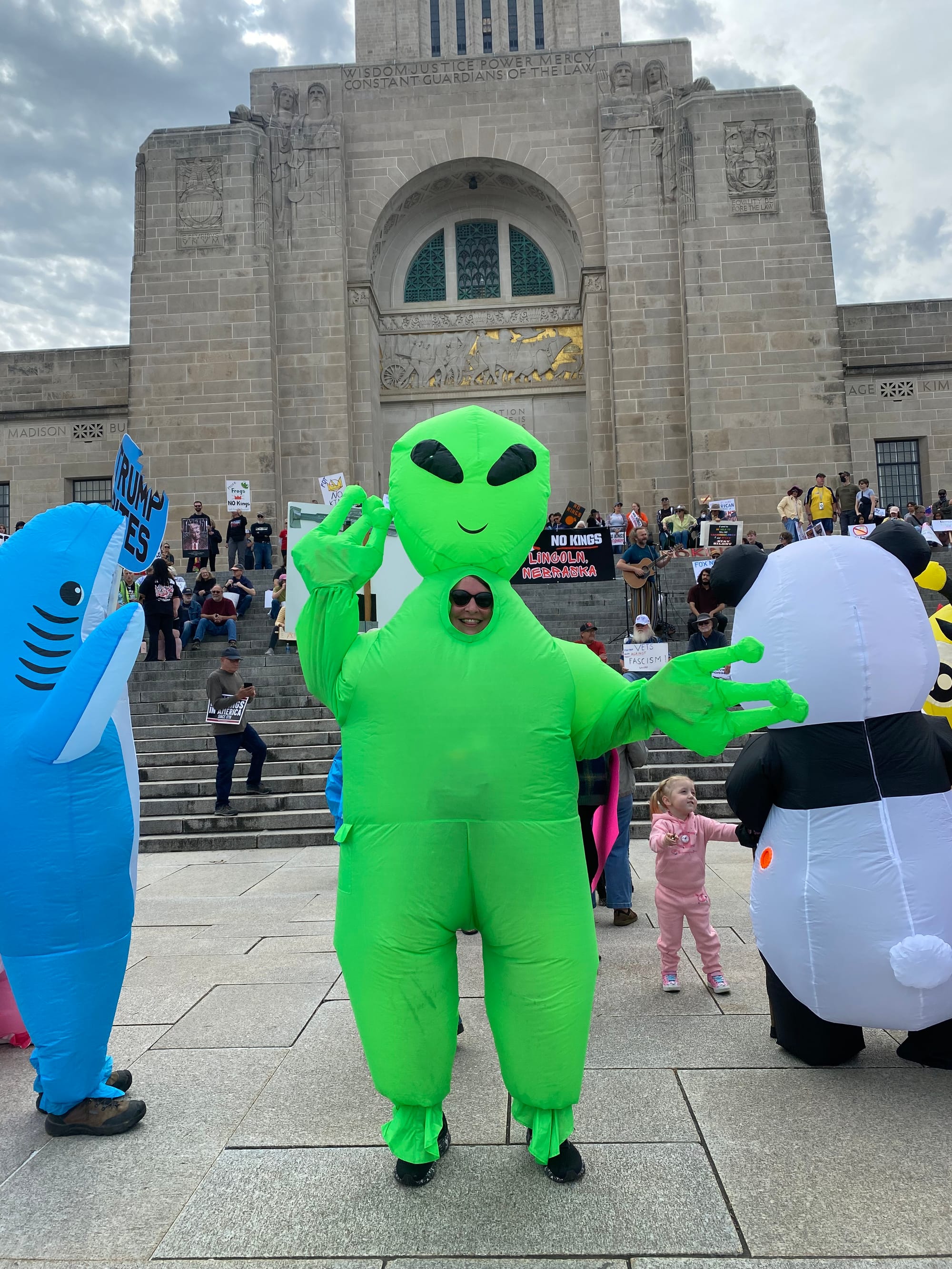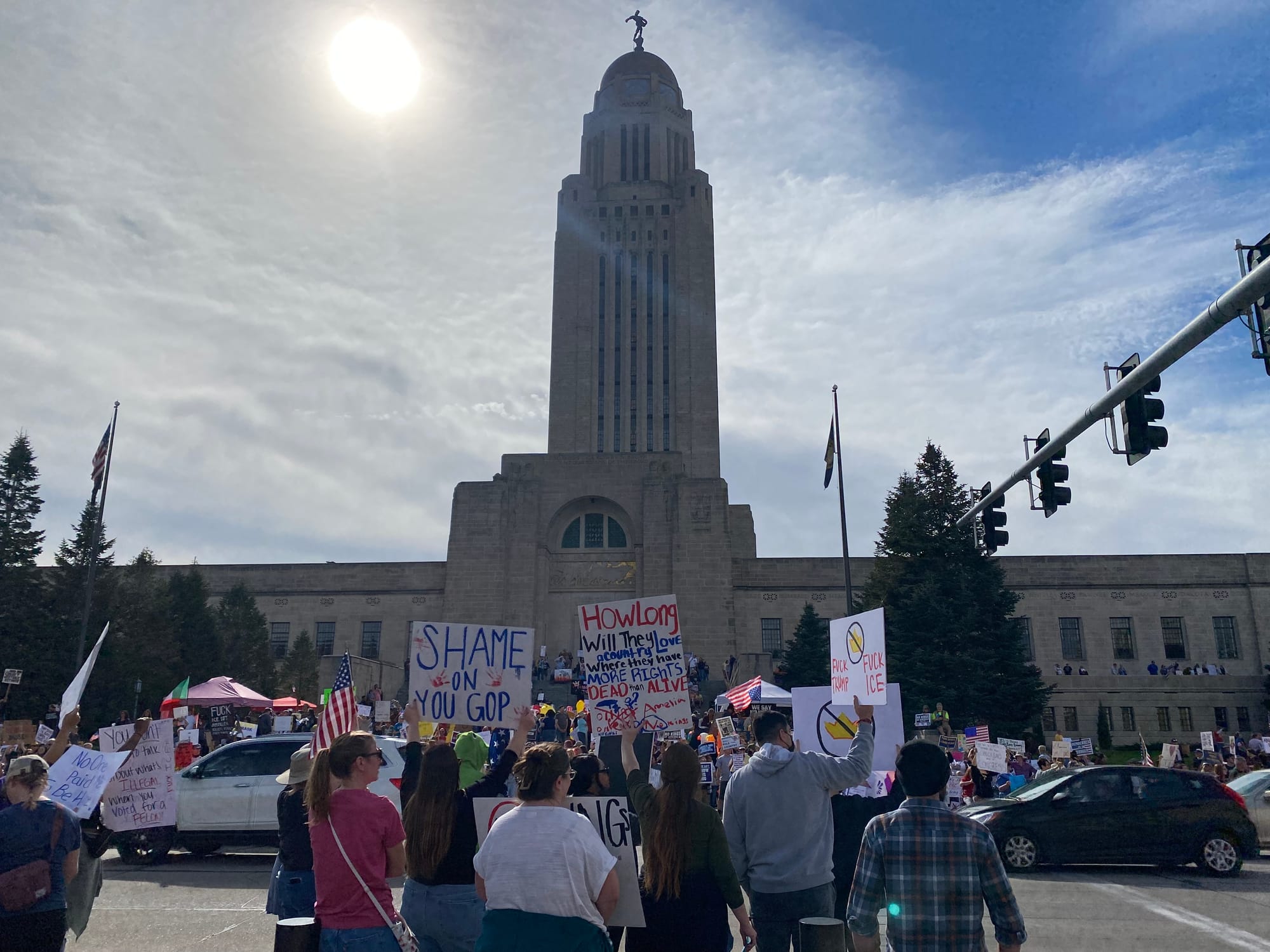 As I walked from my apartment to the Capitol yesterday morning, I didn't know what to expect. Were folks going to show? Were people still angry and energized enough to get off their asses? The news is infuriating but it's exhausting too. Shit wears you down. There was a pretty big turnout for the first No Kings protest back in June. But that already feels like it was six hundred years ago and also only a few dozen people showed up to the local rally against the McCook ICE facility last month.