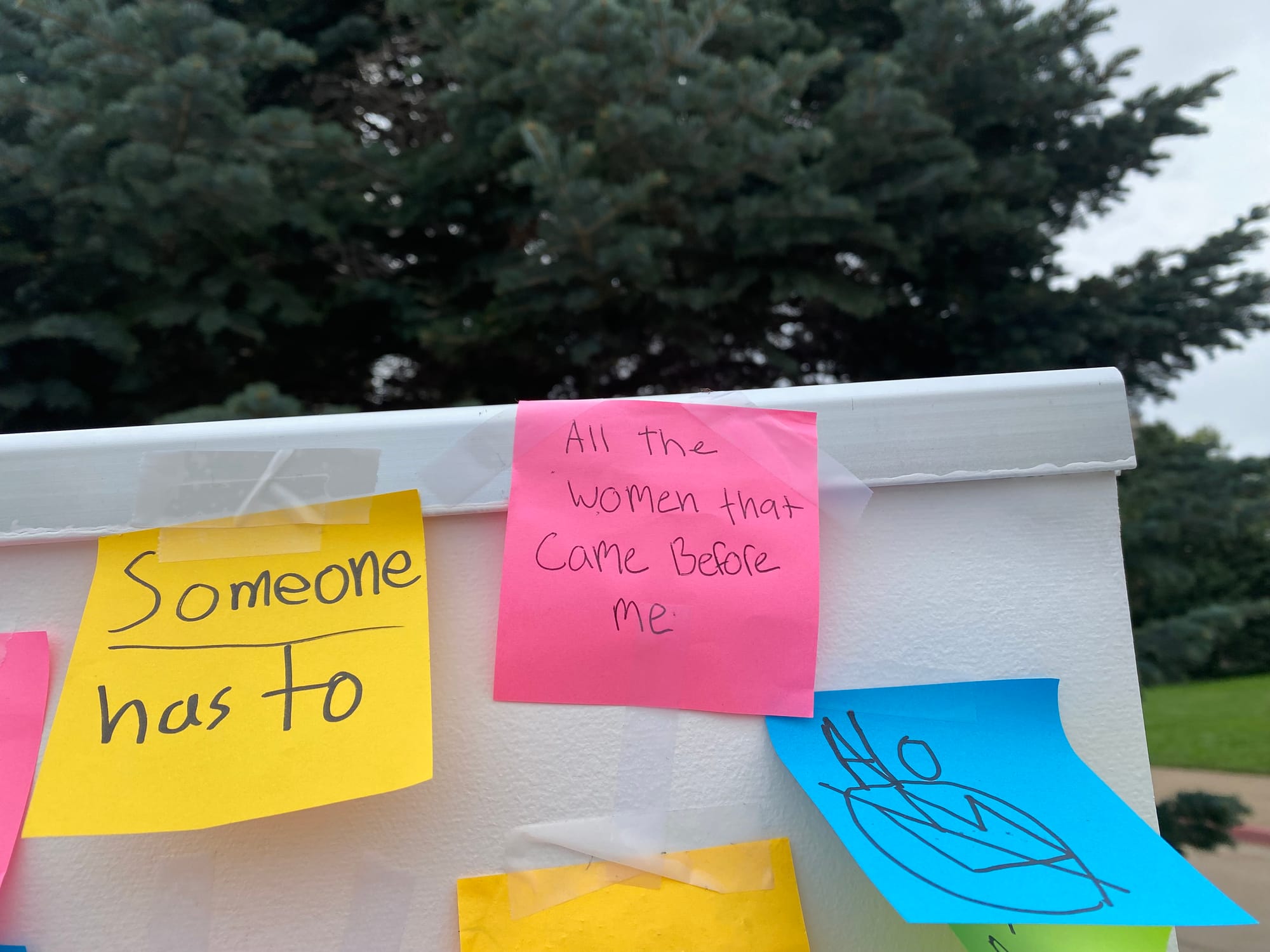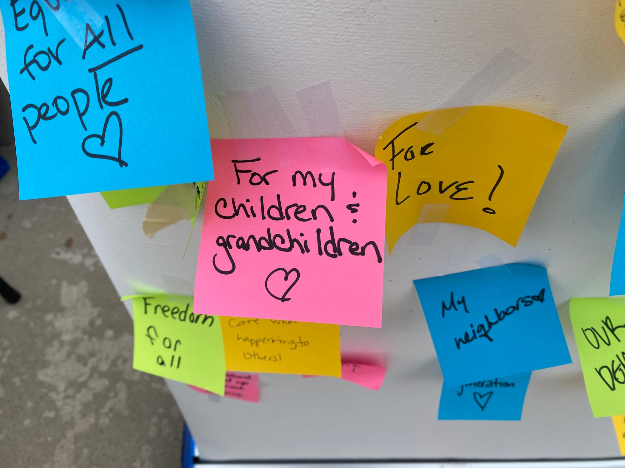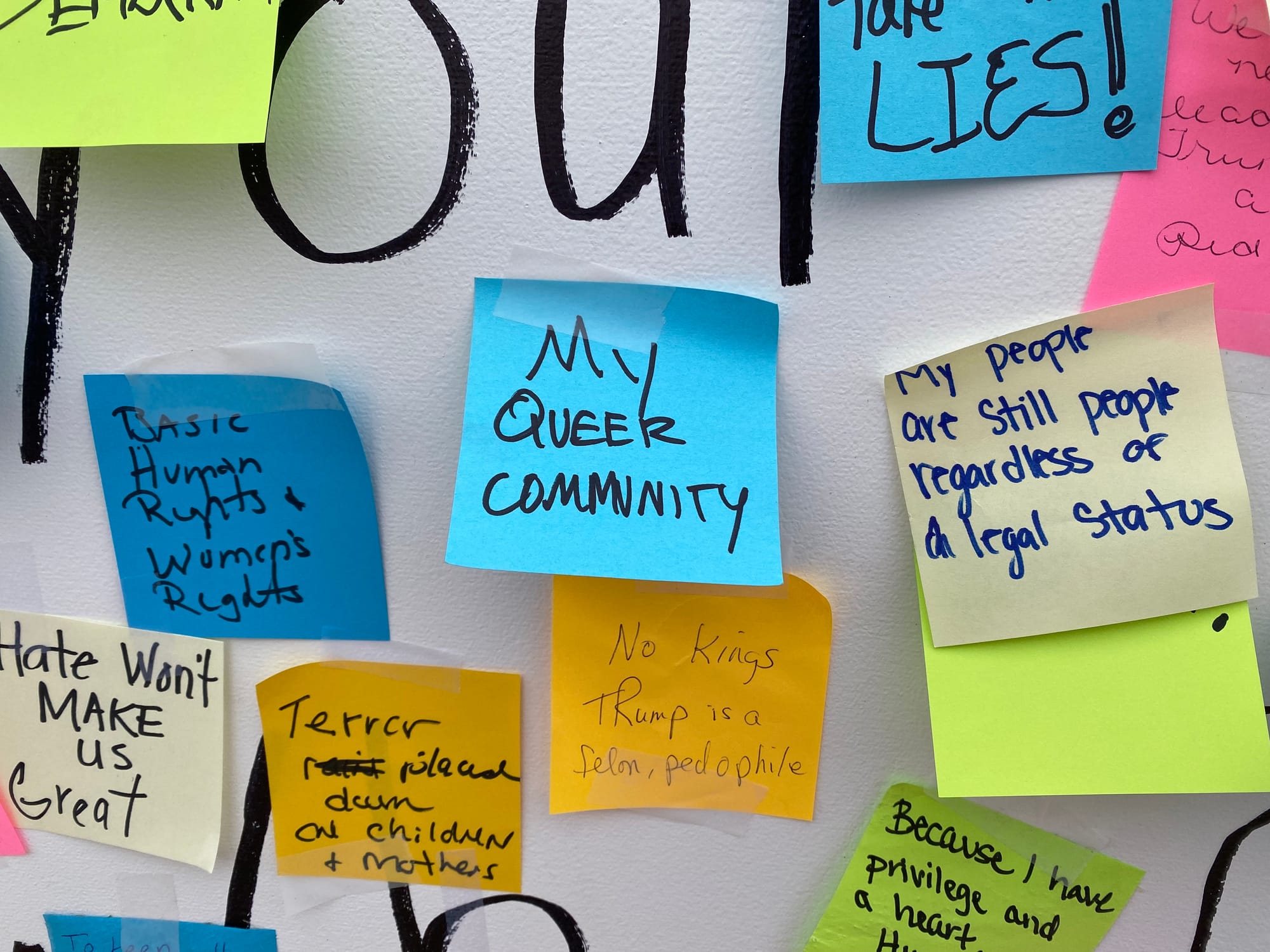 The organizers also set up a little wall near the Capitol steps and asked people to write down why they'd shown up. Most answers were loving and inspiring or both. ("My children & grandchildren" or "My queer community" or "All the women that came before me.")