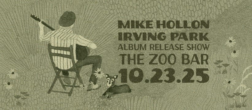 More details from the Zoo Bar's FB page: "Mike Hollon will be performing songs from his new album "Irving Park" live at The Legendary Zoo Bar in Lincoln, NE. He is now based in Asheville, NC and this is a sort of homecoming show with some very special guests. The new album will be available on CD and Vinyl."